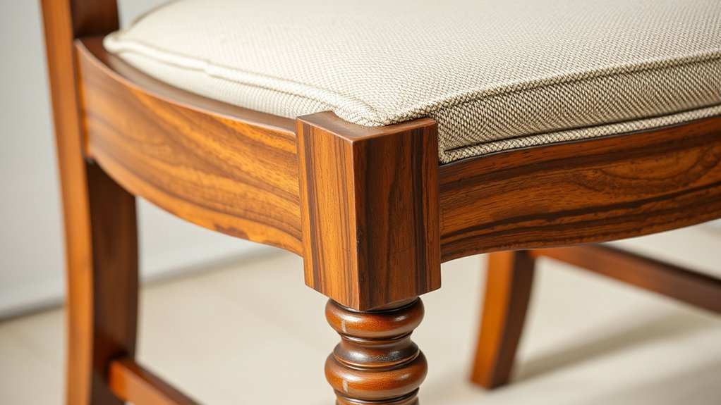 A poorly crafted chair whispers its flaws through loose wood joints that creak under pressure and uneven upholstery that looks like it’s been hurriedly stitched. You’ll notice wobbling or unevenness, as if it’s trying to dance but can’t quite keep step. These signs point to shoddy craftsmanship, where cheap materials and rushed work turn what should be sturdy into a shaky, uncomfortable seat. Keep your eyes peeled for these telltale signs.