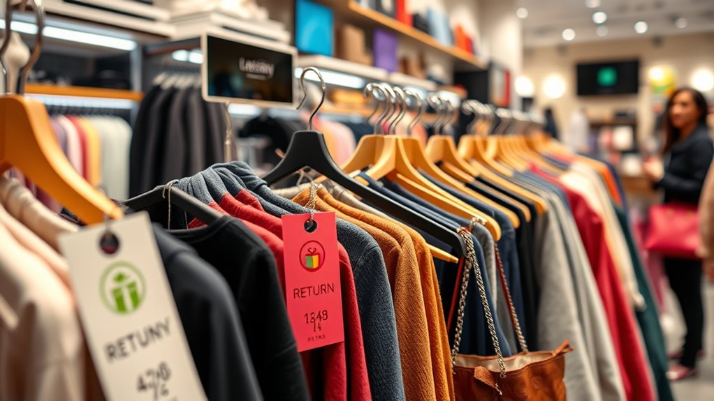 Knowing a store’s return policies helps you shop confidently and avoid surprises. Check if there are restocking fees, especially for electronics or large items, and understand the exchange process—whether you need to return the item first or can swap it instantly. Pay attention to restrictions, such as item condition or time limits, and keep receipts. Being familiar with these details sets you up for a hassle-free return experience if needed—continue to explore for more helpful tips.