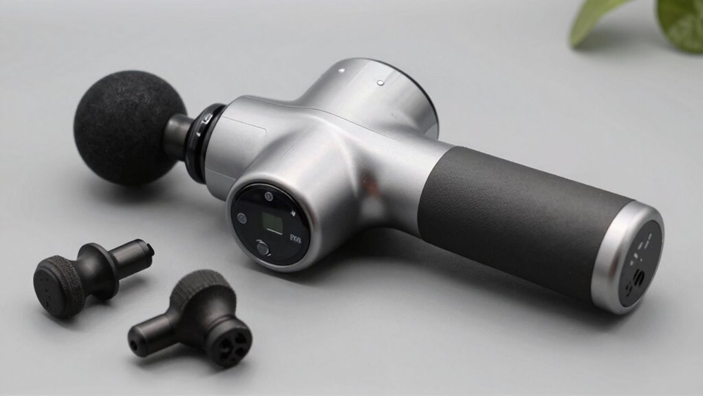 Choosing the right massage gun starts with understanding your specific needs and preferences. Consider your budget and explore different pricing options to find a device that offers good value without sacrificing quality. Look into brand reputation—reliable brands often provide better durability, customer support, and consistent performance. Pay attention to specs like stall force, amplitude, and RPM, and match them to your goals; for example, higher stall force suits deep tissue work, while higher RPM benefits lighter massages. Also, check user reviews to gauge real-world performance. By balancing these technical specs with available pricing options and trusting reputable brands, you can select a massage gun that effectively meets your needs and fits your budget, ensuring a satisfying and effective experience. Understanding massage gun specifications can help you make more informed choices and find the best device for your personal needs. Additionally, familiarizing yourself with sauna and cold-plunge considerations can enhance your recovery routine and overall wellness approach. Moreover, considering ergonomic design features can improve comfort during extended use, leading to better outcomes. Recognizing the importance of adjustable intensity levels can also help tailor the massage experience to your comfort and recovery goals. Incorporating knowledge about standalone features like display screens and battery life can further optimize your selection process.