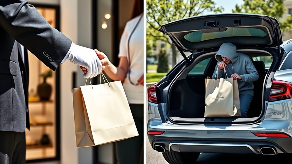 When it comes to delivery services, understanding the difference between white glove and curbside options is essential. White glove delivery offers a premium experience, including careful placement, unpacking, and sometimes assembly services. These services often include tailored storage solutions to fit your needs, ensuring your items are handled with care from start to finish. On the other hand, curbside delivery involves dropping off your items at the curb or driveway, with minimal assistance. It’s a more straightforward, cost-effective option that typically doesn’t include assembly or storage solutions. Knowing these distinctions helps you choose the right service based on how much help you need with setup, storage, and handling, making your delivery experience smoother and more aligned with your expectations. Additionally, understanding the delivery process can help you better coordinate your schedule and prepare for receiving your items.