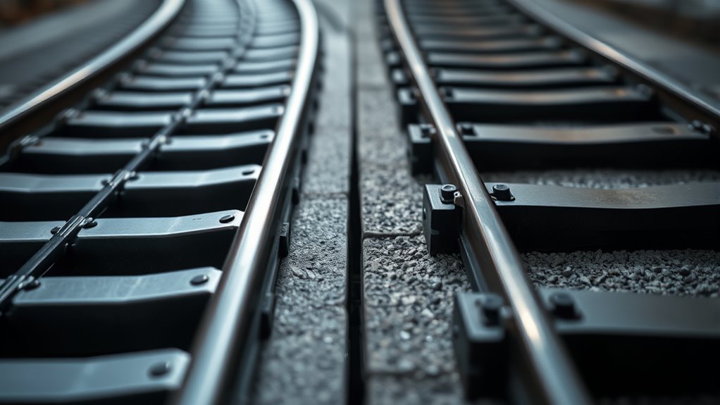 While L tracks and S tracks serve similar purposes in railway systems, their design and functionality differ markedly. L tracks typically use robust steel or composite materials, making them durable for heavy-duty applications. S tracks often incorporate lightweight aluminum or specialized alloys, simplifying installation and reducing weight. When it comes to track materials, these differences influence performance and maintenance needs. For track installation, L tracks usually require precise, secure fastening methods to support heavier loads, which can be more time-consuming. S tracks, on the other hand, often feature modular or snap-in designs that streamline setup. Understanding these distinctions helps you decide which track system aligns best with your project’s durability requirements and installation preferences. Additionally, advancements in automation technologies are impacting how these tracks are maintained and monitored for optimal performance.