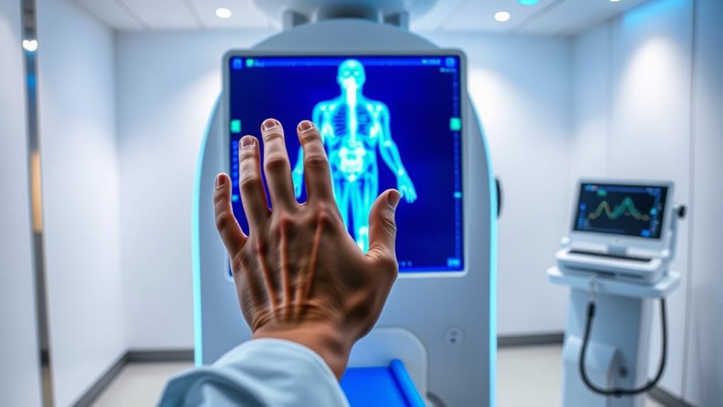 Coincidentally, maintaining ideal conditions guarantees your body scan machine performs reliably. You should keep the environment clean, following strict cleaning protocols to prevent dust and debris buildup. Maintain stable temperature and humidity levels, avoiding extreme fluctuations. Regular software updates are essential, but environmental consistency helps these updates install smoothly. By controlling these conditions, you’ll extend your equipment’s lifespan and ensure accurate readings during every scan.
