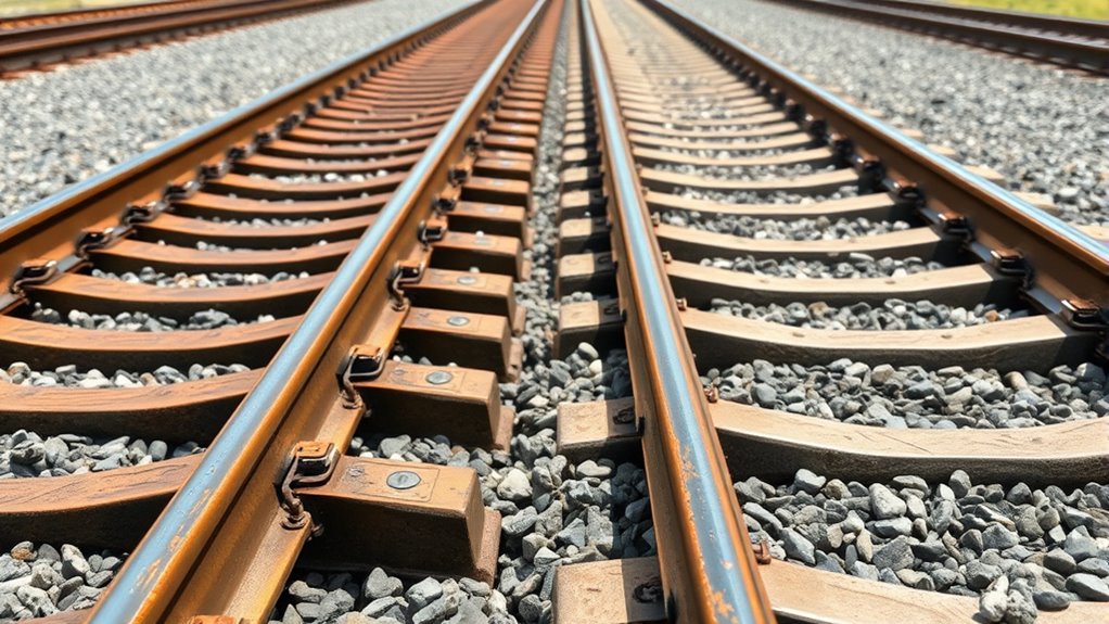 Sure, pick a track just for today’s needs, but don’t forget future expansion. It’s ironic—you might think your current railway signaling and track alignment are perfect, only to find they limit growth tomorrow. Planning ahead guarantees your tracks can handle future trains and signaling upgrades without costly rework. Think long-term, and you’ll save yourself headaches, ensuring smooth expansion without sacrificing safety or efficiency.