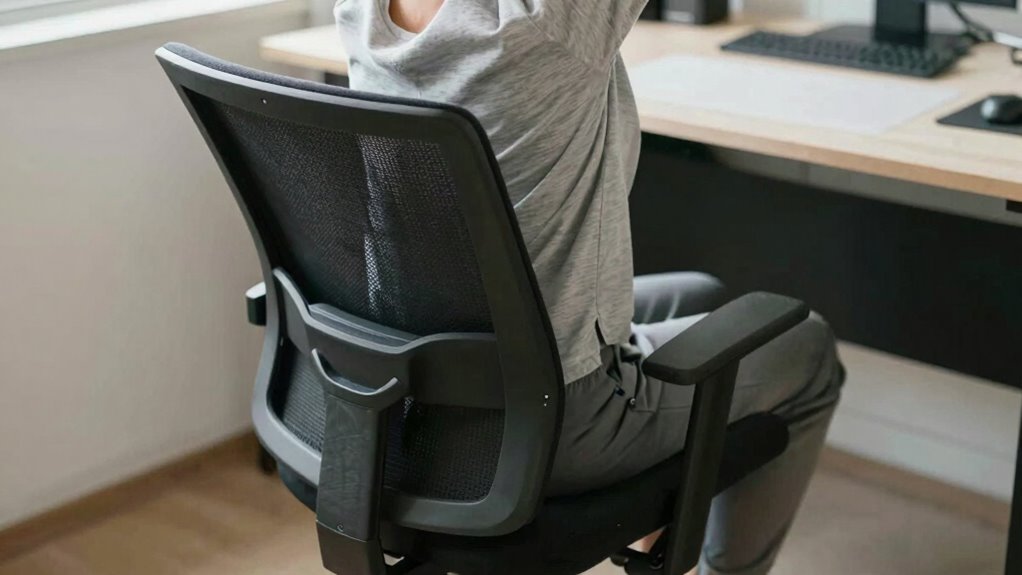 If you notice these, it’s time to revisit your ergonomic assessment and improve your chair setup. Proper posture correction can prevent long-term damage and promote better comfort, especially when combined with ergonomic principles and regular movement. Incorporating body mechanics awareness into your routine can further enhance your sitting comfort and prevent strain.