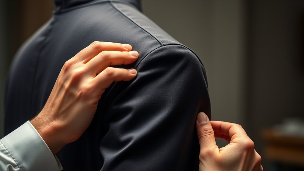 To choose the right arm and shoulder gear, focus on gear selection that offers excellent fit customization. Measure your arm and shoulder dimensions accurately and try gear with adjustable features to guarantee comfort and support. Prioritize materials that breathe and move with you, and consider your activity level. Proper fit enhances performance and prevents injury, so don’t settle for generic sizes—customize your gear for ideal results.