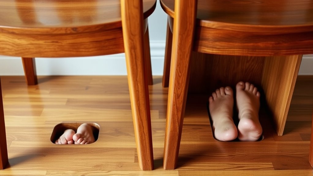 Think of foot wells as the foundation beneath a sturdy tree; they support your posture over time. Properly designed foot wells offer ergonomic benefits, reducing strain and promoting natural alignment. They influence your sitting posture by encouraging a balanced, comfortable position, especially during long periods. Good design considerations guarantee your feet are supported, which helps prevent fatigue and discomfort, ultimately maintaining your health and well-being through sustained ergonomic support.