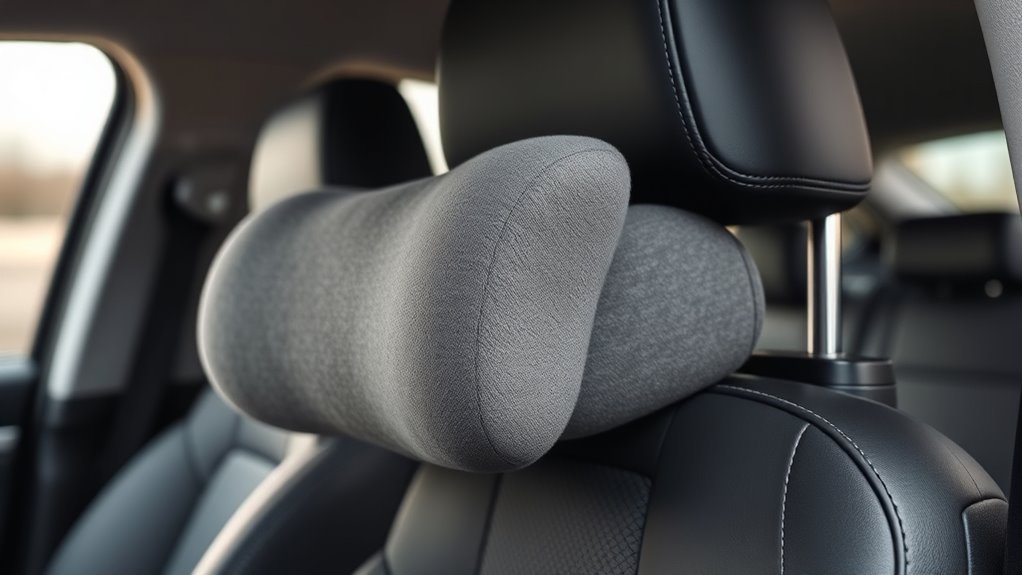 Adjustable headrests act like a tailored suit for your neck, helping prevent pain by providing ideal cervical support. When you customize them, especially with memory foam padding, you create a cradle that aligns your spine and reduces strain. Properly adjusted headrests keep your neck in a neutral position, easing tension and preventing discomfort. So yes, personalized headrests are a smart way to ward off neck pain and promote better posture.