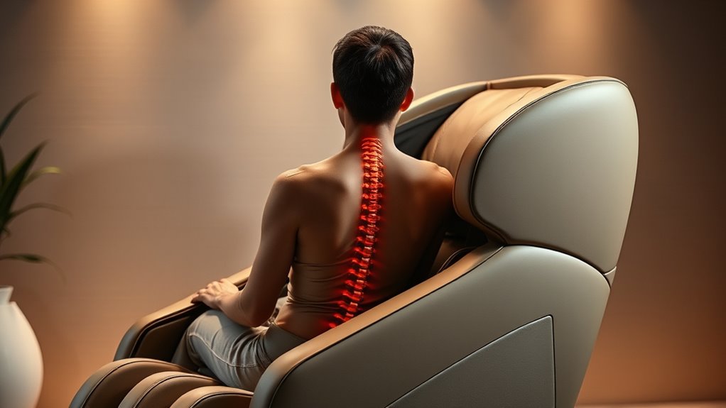 Think of your spine as a delicate tower that needs steady support. Massage chairs with lumbar support and adjustable rollers act like skilled builders, guiding your spine into proper alignment. The lumbar support cradles your lower back, while adjustable rollers target key areas, promoting better posture. These features work together to keep your spine in harmony, helping you stand taller and feel more balanced with each session.
