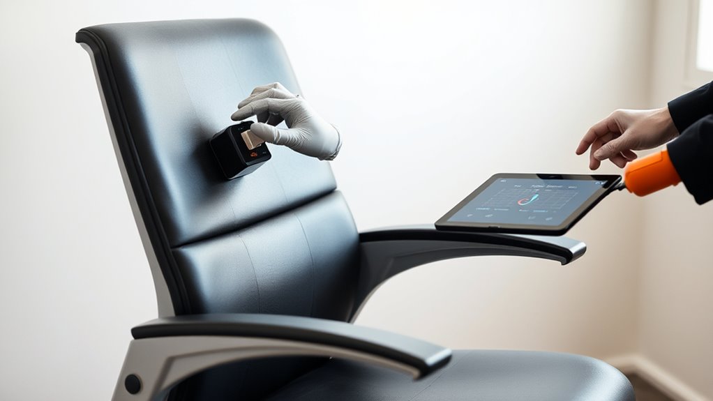 Think of recalibration as fine-tuning a musical instrument; you’ll need precise adjustment tools to strike the right chord. For accurate sensor calibration, gather a screwdriver, a level, and any manufacturer-provided adjustment tools. These instruments help you make subtle, intentional tweaks, ensuring your chair’s sensors respond accurately. Using the right tools allows you to reset your chair’s body scan, transforming it into a trustworthy mirror of your true posture.