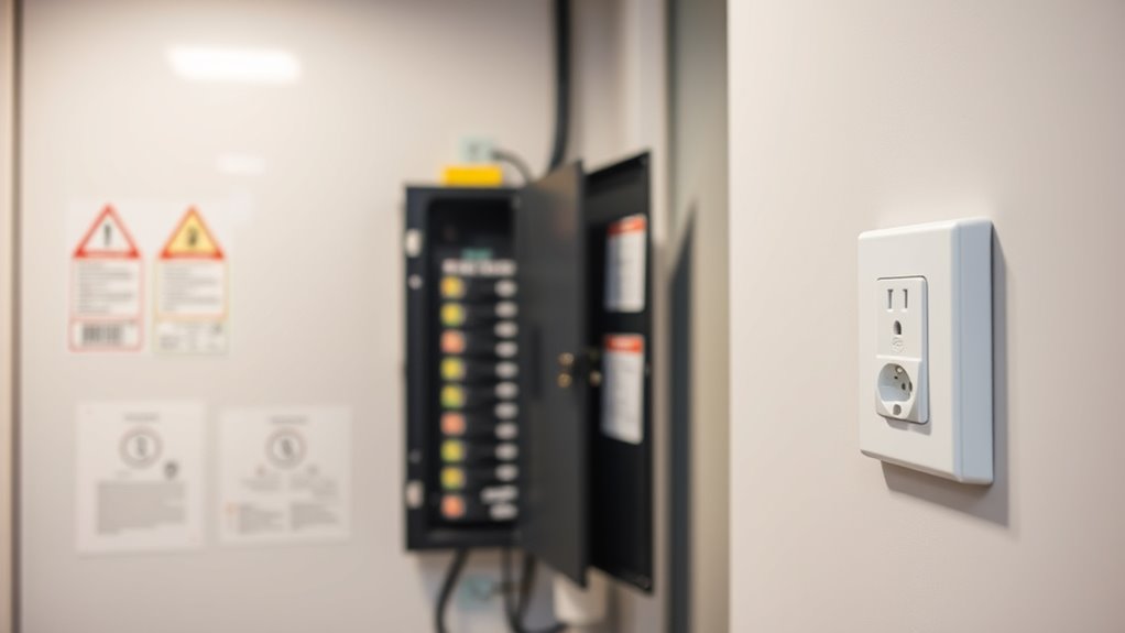 Think of your home’s electrical system as a delicate dance—each step must be precise to keep everyone safe. By quickly inspecting breakers, outlets, and wiring, you’re tuning the rhythm, preventing dangerous missteps. A little effort now keeps chaos at bay, ensuring your home stays in harmony. Regular safety checks are your beat, guiding you to a secure, energized space where everything flows smoothly and safely.