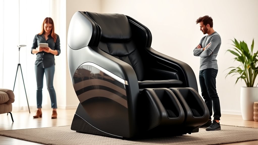 Before using a massage chair, it’s important to recognize situations where consulting a healthcare professional is necessary. If you have pre-existing health conditions like heart issues, blood clots, or recent surgeries, seek advice first. This is especially true if you plan to explore DIY tips or try advanced massage techniques at home. A professional can recommend safe methods tailored to your needs and warn you about potential risks. Also, if you experience persistent pain, numbness, or discomfort during or after using the chair, stop immediately and get professional guidance. When in doubt, consulting a healthcare provider ensures you avoid exacerbating injuries or health issues. Prioritizing expert advice helps you enjoy massage chairs safely and effectively.