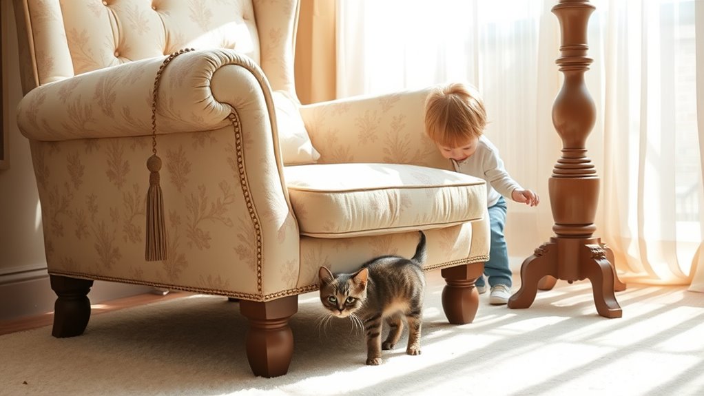 Dealing with pets and children around chairs often leads to emotional strain and unexpected stress, as constant vigilance becomes exhausting. The emotional toll can drain your energy, making everyday moments feel overwhelming. To manage this stress effectively, consider these factors: