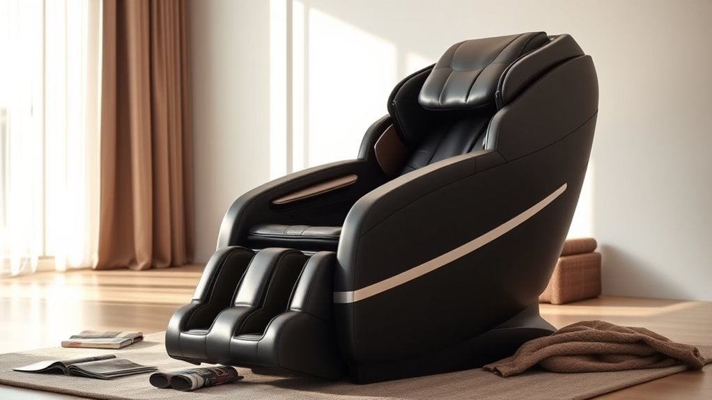 You should use your massage chair about 2-3 times a week for maintenance. Stick to a routine scheduling that fits your comfort and needs. To keep it in top condition, follow maintenance tips like cleaning the upholstery regularly and checking for loose parts. Avoid overusing the chair, which can cause wear and tear. Consistent, moderate use helps prolong your massage chair’s lifespan and guarantees you get the most benefit.