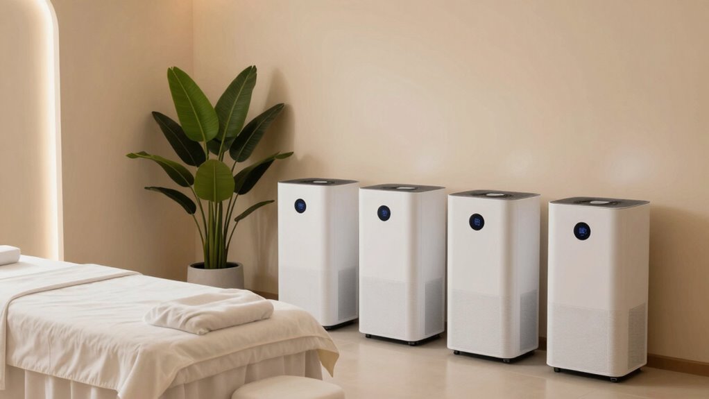 They say “prevention is better than cure,” and I agree when it comes to maintaining air purifiers in large spaces. Yes, they do require special maintenance, like regularly replacing filters and cleaning ducts to keep them running efficiently. I recommend scheduling routine checks and following the manufacturer’s instructions closely. This way, your purifier stays effective, ensuring a clean, healthy environment for your massage sessions.