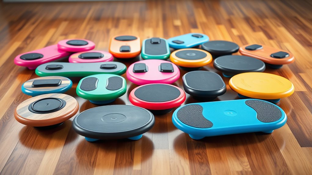 If you’re looking to boost your stability and core strength, I recommend checking out the top 15 balance boards and wobble trainers available. These options range from durable wooden designs with high support capacities to lightweight, anti-slip models suitable for all skill levels. They excel at improving balance, coordination, and functional fitness for beginners and athletes alike. Keep exploring, and you’ll discover the perfect choice that fits your needs and goals.