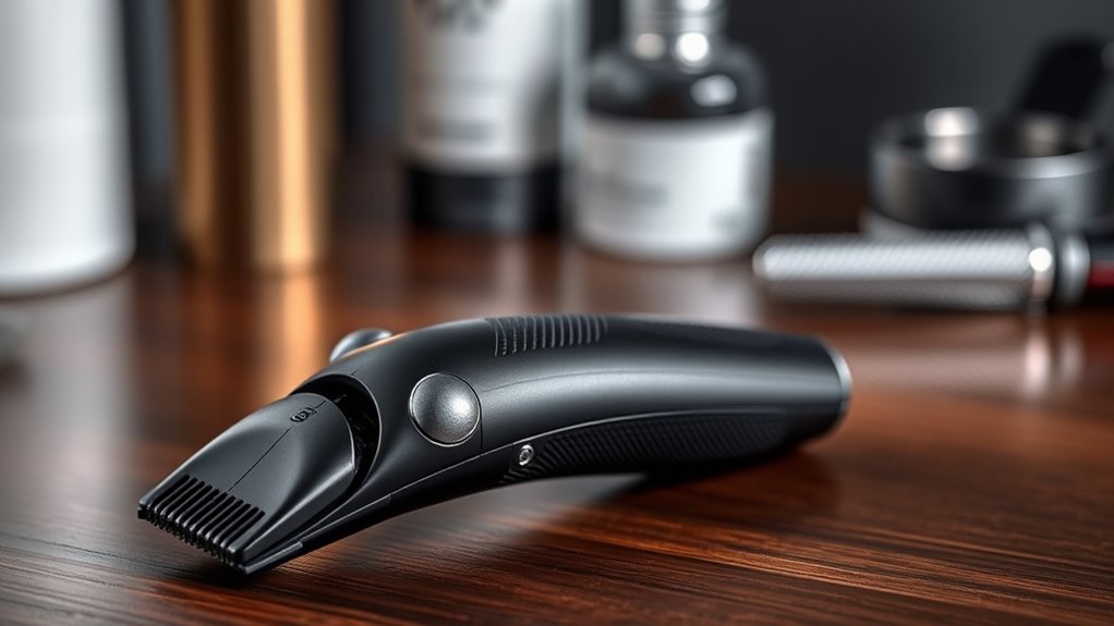 Beyond ergonomic comfort, the range of grooming accessories that come with beard trimmers considerably impacts their versatility and usefulness. Many models include multiple length guards or comb attachments, allowing me to customize trimming lengths and styles effortlessly. Some even come with precision trimmers, detailers, or nose hair trimmers, making my grooming routine more exhaustive. Maintenance tools like cleaning brushes, oil, and replacement blades help keep the device in top shape and guarantee hygiene. Detachable or adjustable combs give me the flexibility for close shaves or detailed styling. Additionally, accessories like travel cases or storage pouches make organizing my grooming tools easier and enable me to take my trimmer on the go. These extras truly enhance the overall grooming experience.