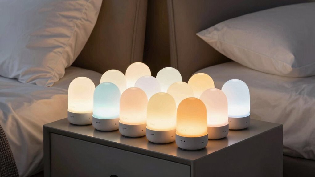 Having the right brightness adjustment is just the start; color customization options really let me set the perfect mood. Many smart lights offer millions of RGB colors, so I can fine-tune the ambiance exactly how I want it. Some models even support adjustable color temperatures from warm (2700K) to cool white (6500K), making it easy to match different activities or times of day. Creating and saving personalized scenes with specific colors adds convenience, allowing me to switch moods effortlessly. For more vibrant options, advanced lights include DIY effects like gradients or color cycles, which bring dynamic visual interest. Most smart lights integrate with smartphone apps, giving me detailed control over colors, gradations or transitions, and effects, ensuring my bedside lighting is always perfectly tailored to my needs.