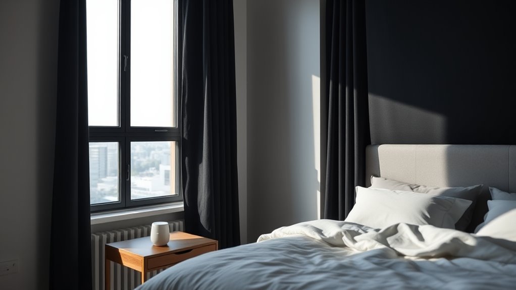 Blackout curtains improve my sleep by blocking out external light, making my room darker and more conducive to rest. When I use them, I notice I fall asleep faster and stay asleep longer, even if the streetlights are on or it’s early morning. They also help regulate my body’s melatonin production, leading to more restful and uninterrupted sleep. Overall, they create a peaceful environment that enhances my sleep quality markedly.