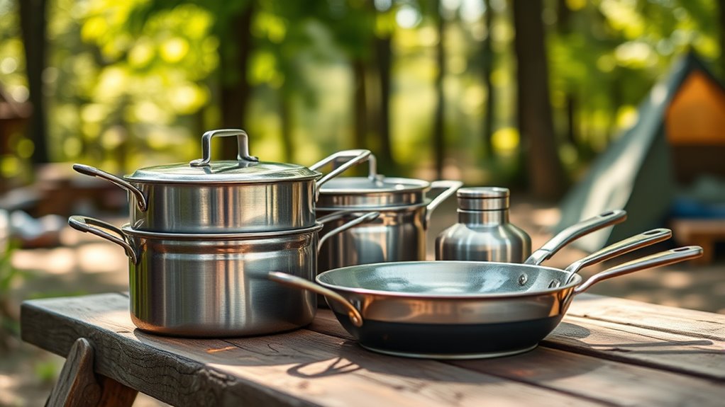 Choosing the right camping cookware set is like finding the perfect compass—it guides your outdoor adventures with confidence and ease. With options ranging from compact mess kits to versatile 27-piece collections, you’ll find something that fits your style and needs. Remember, the right gear turns camping from a simple trip into a memorable journey. So, gear up wisely, and let your outdoor story unfold with every delicious meal you create under the open sky.