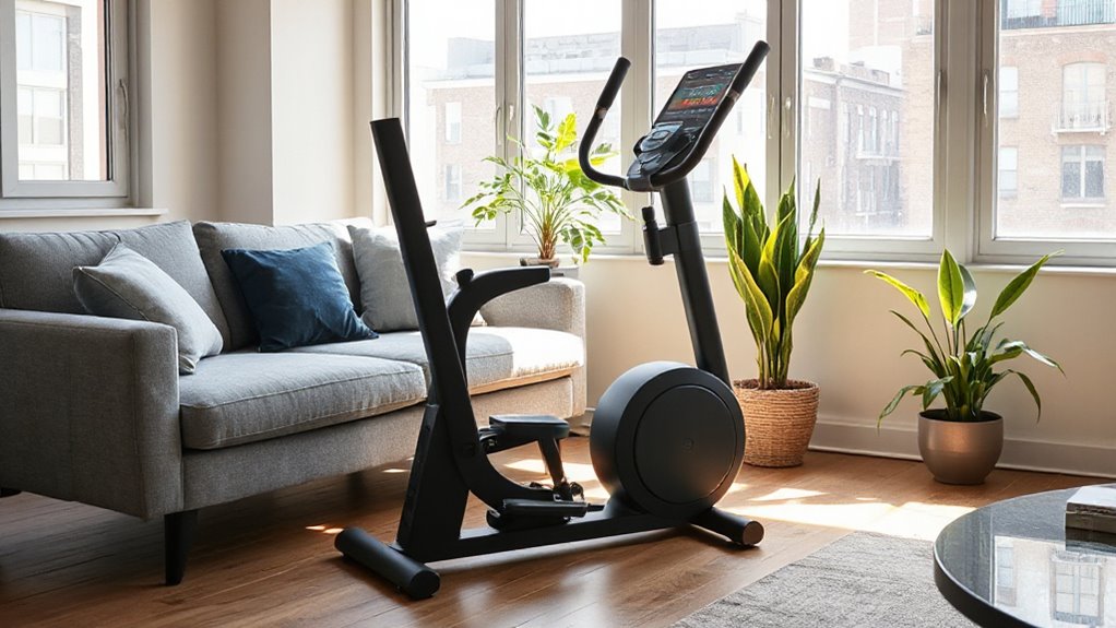 These ellipticals are surprisingly quiet during use, often producing just a soft hum rather than loud noise. I find them perfect for apartment living because they don’t disturb my neighbors. The quieter models use advanced magnetic resistance systems, which keep noise levels minimal. I recommend checking specific product reviews, but overall, most compact ellipticals today are designed to operate smoothly without creating disruptive sounds, making them ideal for small spaces.