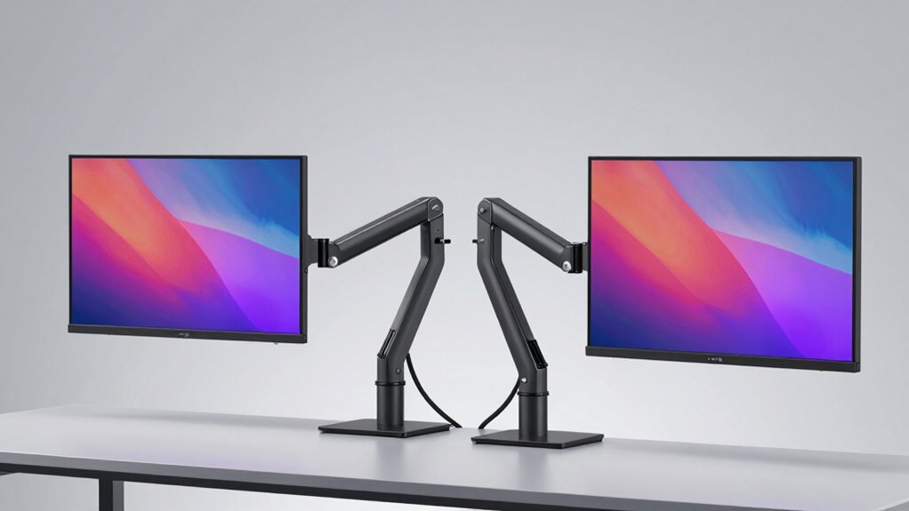 Choosing the right heavy-duty dual monitor arm transforms your workspace into a sleek, clutter-free haven. Imagine effortlessly gliding your screens into perfect positions, their sturdy arms holding firm through busy days. With the options I’ve shared, you can craft a setup that feels as solid as it looks, making every work session smooth and comfortable. So, pick the one that speaks to your needs—your ideal workspace awaits just a move away.