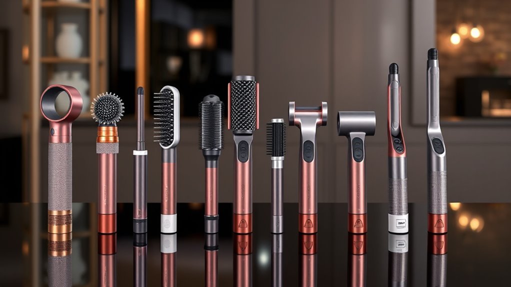If you’re looking for the best Dyson Airwrap alternatives in 2025, I’ve found some fantastic options. The Shark HD430 FlexStyle offers multiple attachments with Coanda technology for effortless curls. The Bopcal 5-in-1 Styler adds versatility with auto-curl, straighten, and volumize features. The upgraded Dyson attachments and WAJIAYON diffuser improve performance. Plus, systems like Shark FlexStyle and all-in-one dryers with auto curlers offer quick, salon-quality results. Keep exploring to find the perfect fit for your styling needs.