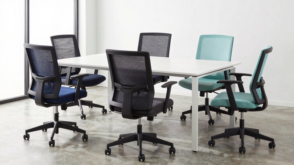 These chairs promote proper posture for short individuals by offering adjustable seat height, lumbar support, and customizable armrests. I can easily set the chair to fit my height, ensuring my feet rest flat on the ground and my back is supported. The ergonomic design encourages me to sit upright, reducing slouching and strain. This tailored fit helps maintain good posture throughout my workday, preventing discomfort and long-term issues.