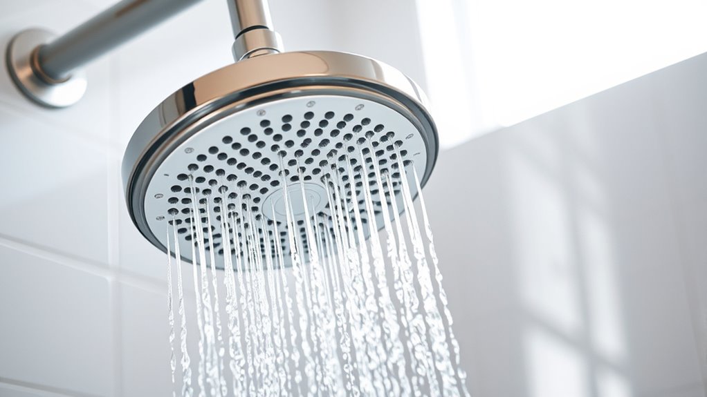High water pressure is essential for a satisfying shower experience, even with filtration systems in place. When choosing a filtered shower head, it’s important to take into account how the filter may impact flow. Some models include pressure-boosting technology to help maintain strong water flow despite filtration. However, filters that markedly reduce flow rate can lead to a weaker shower, which might be disappointing. Adjustable spray settings can help compensate for pressure drops by increasing flow in certain modes. Proper installation and high-quality filtration materials are key to preserving water pressure without sacrificing filtration effectiveness. Ultimately, selecting a shower head that balances filtration with sufficient water pressure ensures a revitalizing, enjoyable shower every time.