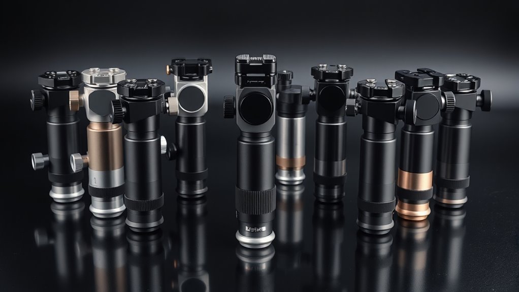 Choosing a fluid tripod head hinges largely on its damping capabilities, as this directly impacts how smoothly your camera moves. Higher damping provides more controlled motion, preventing jerks and sudden shifts. Adjustable damping systems are especially valuable, allowing me to tailor resistance during pan and tilt to suit different shooting scenarios. Hydraulic or fluid-based dampening mechanisms excel at absorbing vibrations, resulting in seamless, shake-free footage during dynamic or rapid camera movements. Consistency across multiple axes is essential to maintain stability, especially during complex shots. The quality and design of the damping system play an essential role in delivering smooth, precise control. Ultimately, a well-designed damping system ensures fluid motion and professional-looking results, making it a key factor when selecting the right fluid tripod head for video work.