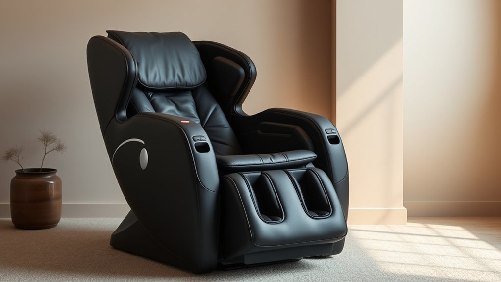 Choosing the right upholstery material is essential for ensuring comfort and practicality in a compact massage chair, especially for petite users. I recommend soft, breathable options like natural leather, high-quality fabric, or mesh, which enhance relaxation and prevent overheating during long sessions. Water- and oil-resistant PU leather or specialized synthetic fabrics are excellent for durability and easy cleaning, making them ideal for frequent use. Memory foam padding within the upholstery offers personalized support, contouring to smaller frames and sensitive pressure points. Lightweight and flexible materials help keep the chair adjustable and easy to move, ensuring a comfortable fit for petite users. Breathable fabrics like NaturSoft or mesh improve airflow, making extended massage sessions more comfortable without sacrificing style or functionality.