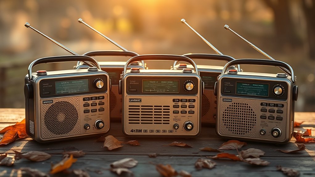 Think of choosing the right hand crank radio as picking a sturdy lighthouse in a storm. Each model shines differently, guiding you safely through unpredictable weather with alerts and power options. Just like a lighthouse’s beam cuts through fog, the right radio will illuminate your preparedness and keep you informed. No matter which one you choose, it’ll serve as your steadfast beacon when you need it most, ensuring you’re never left in the dark.
