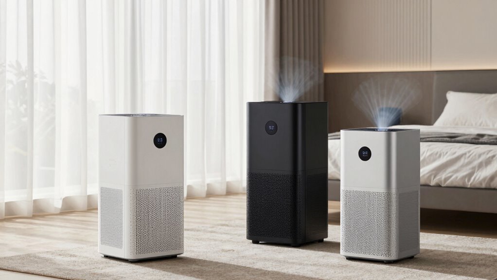 Did you know that HEPA filters can trap up to 99.97% of particles as small as 0.3 microns? I can confidently say that HEPA purifiers are highly effective at removing pet dander from bedrooms. They capture those tiny particles that trigger allergies, helping you breathe easier. So, if pet allergies bother you, investing in a good HEPA air purifier can make a noticeable difference in your sleep quality and overall comfort.