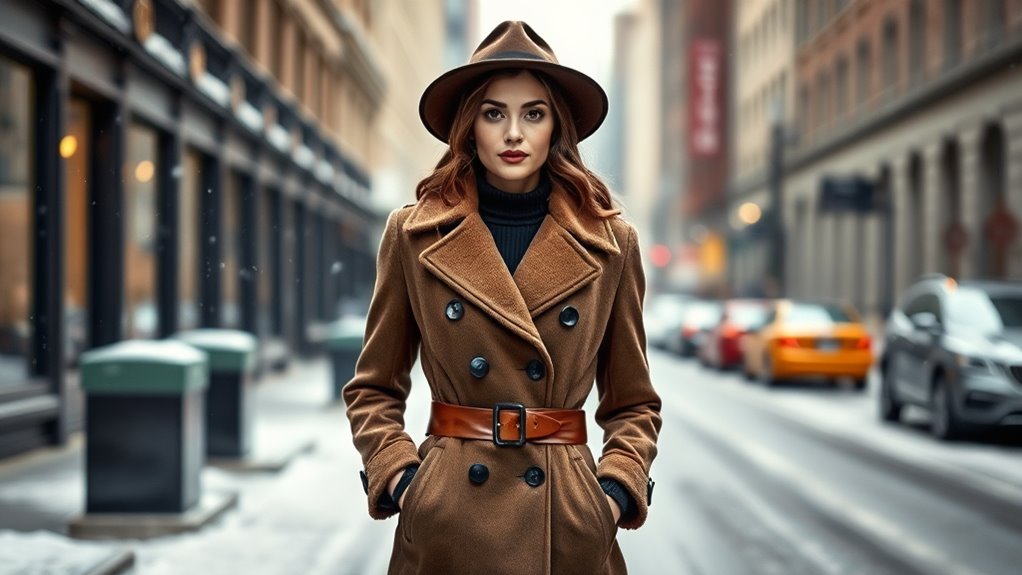 If you’re looking for the best high-end wool coats for women that blend style, luxury, and warmth, I’ve got you covered. I recommend classic designs like double-breasted trench coats, pea coats with notch lapels, and long wool options in versatile colors. Fabrics like wool blends or pure wool guarantee durability and sophistication. With features such as tailored fits, practical pockets, and stylish details, these coats elevate any winter wardrobe. Keep going to discover more about these timeless pieces.