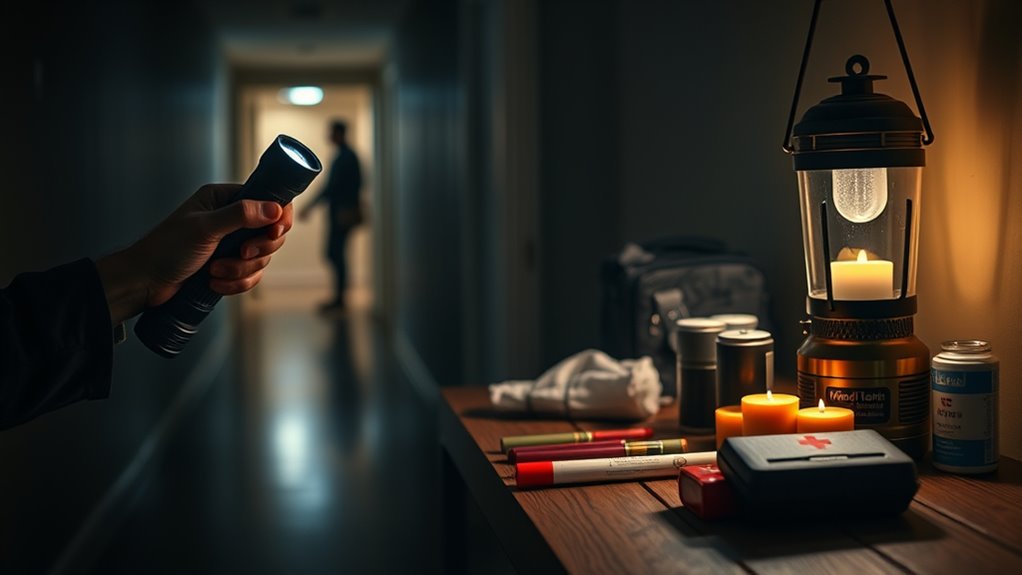 To keep my family safe during power outages, I rely on the best emergency lighting solutions like LED emergency lights, waterproof outdoor exit signs, and versatile multi-pack options. I prefer models with at least 90 minutes of backup power, durable materials, and easy installation. Weatherproof and UL-listed lights give me peace of mind in any environment. If you want the full list and tips, you’ll find more options that suit various needs ahead.