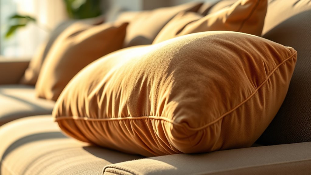 Choosing a headrest pillow that lasts requires paying attention to its durability and how easy it is to maintain. I look for pillows made from high-quality materials like genuine leather or high-density foam, which provide long-lasting support. Regular maintenance, such as spot cleaning and avoiding prolonged sunlight exposure, can considerably extend the pillow’s life. Removable, washable covers make upkeep simple and help keep the pillow looking fresh and hygienic over time. Securing the pillow with adjustable straps or stable bases prevents shifting, reducing unnecessary wear and tear. Investing in a pillow with resilient fill and durable outer fabric minimizes the need for frequent replacements and lowers maintenance costs. Overall, choosing the right materials and care routines ensures my pillow remains supportive and in good condition for years.