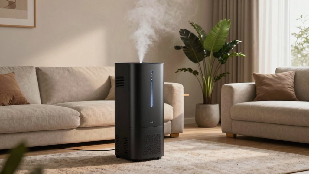 Choosing the right humidifier is like tending a lush garden—you nurture the air to blossom with comfort and freshness. Whether you prefer sleek tech or soothing aroma options, each of these top picks can turn your large living space into a gust of fresh air. Remember, the right humidifier isn’t just an appliance; it’s the heartbeat that keeps your home vibrant and alive. Make your choice, and let your living room breathe freely again.