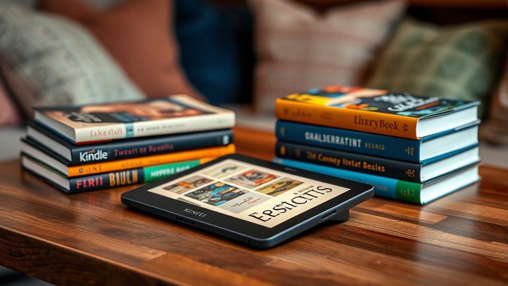 Choosing the right Kindle Unlimited deal in 2025 hinges on evaluating whether the subscription cost truly offers good value for your reading habits. I ask myself if the monthly fee gives access to enough books to justify the expense. If I usually read books that cost more than the subscription, it’s a smarter choice. Unlimited reading privileges make it even more attractive for avid readers like me. I also compare the cost with my reading frequency and preferred genres to confirm it’s cost-effective. Additionally, I consider whether the subscription provides better value than other e-book services I might use. By evaluating these factors, I can decide if the deal aligns with my reading habits and budget, ensuring I get the most out of my Kindle Unlimited subscription.