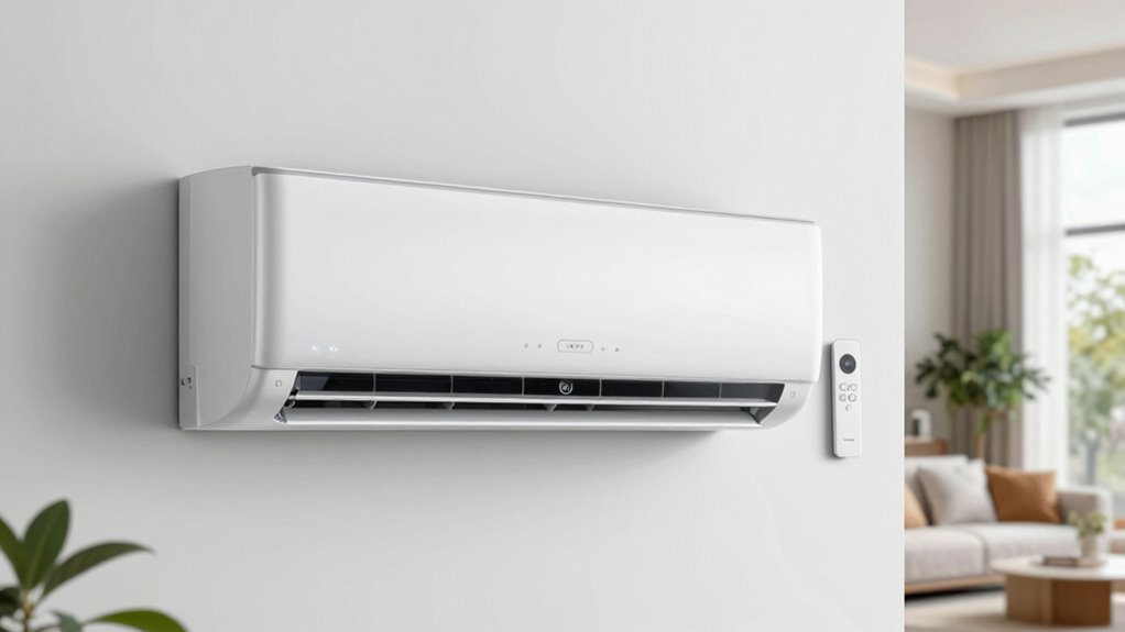 Smart connectivity features have become a key factor to contemplate when choosing a mini split AC heat pump system, as they markedly enhance convenience and control. With Wi-Fi capabilities, I can control my system remotely via smartphone apps, making adjustments from anywhere. Compatibility with voice assistants like Alexa and Google Assistant lets me manage settings hands-free, integrating seamlessly into my smart home. Advanced features like geo-location adjust temperatures based on my location, optimizing energy use. Scheduling functions, including timers and auto-shutdown, help me customize comfort and save energy. Some units even offer real-time monitoring and diagnostics through connected apps, providing insights into system health and maintenance needs. These smart features make managing my climate system easier, more efficient, and more aligned with my lifestyle.
