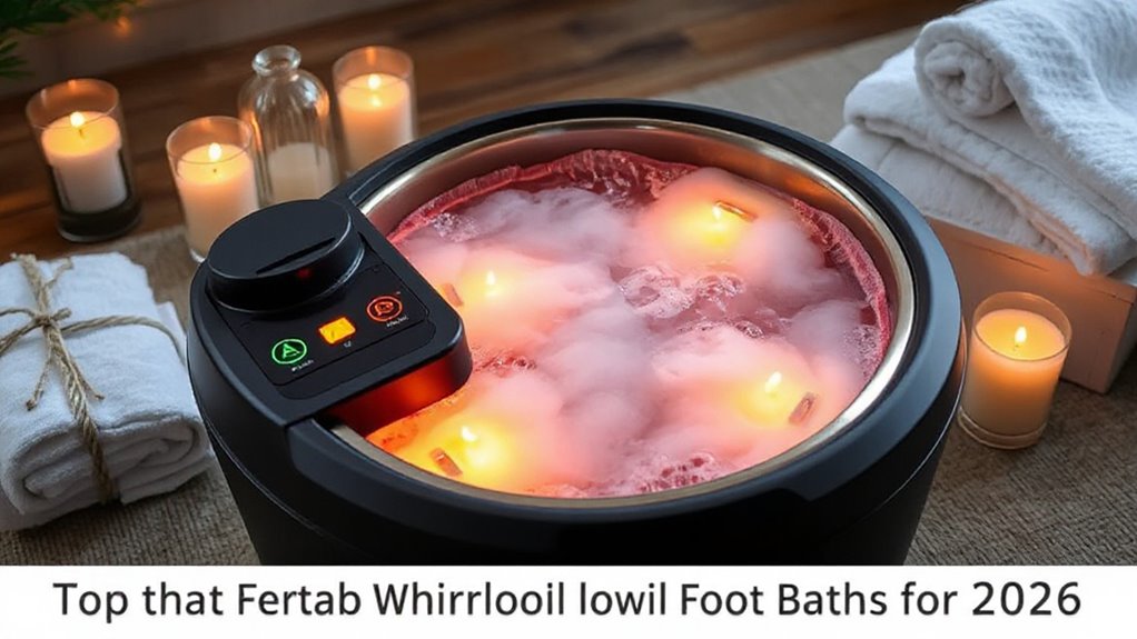 Looking for the best portable whirlpool foot bath spas for 2026? I’ve found top models that combine effective massage functions, adjustable heat, bubble jets, and foldable designs for easy storage and transport. Brands like ACKLEAP, Beinilai, HOSPAN, Heycool, and Ranjova offer high-quality options with features like multiple massage rollers, adjustable temperature, and water drainage systems. Keep reviewing, and you’ll discover which model suits your needs perfectly.