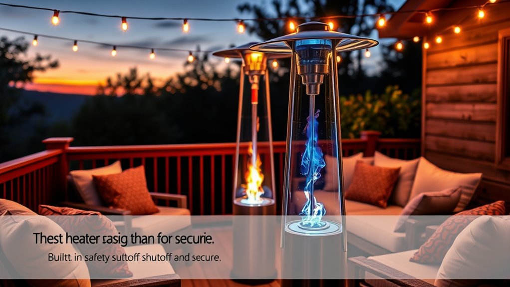 Safety shutoff features prevent accidents by automatically turning off the heater if it tips over or if the flame goes out. I rely on these mechanisms because they stop propane flow instantly, reducing the risk of leaks or fires. This gives me peace of mind when enjoying my outdoor space, knowing that the heater has built-in safeguards to prevent dangerous situations and keep everyone safe.