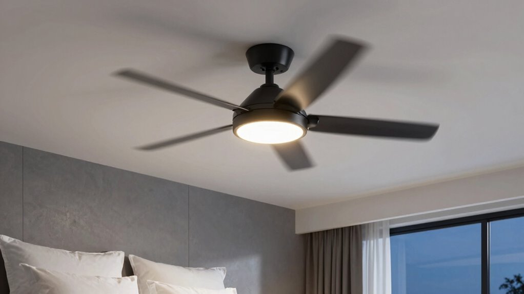 Blade design and material substantially influence how quietly a ceiling fan operates in a bedroom. Curved or aerodynamic blades promote smoother airflow, reducing turbulence and noise. Materials like plywood, ABS plastic, or composites tend to be quieter than metal or solid wood, which can create more sound during operation. Double-sided blades with contrasting finishes look stylish and stay lightweight, aiding quieter performance. The number of blades also impacts noise—fewer blades, usually three to five, often generate less sound while maintaining good airflow. Additionally, blade thickness and proper balance are essential; well-balanced, thicker blades help prevent vibrations that can increase noise. Choosing blades that combine thoughtful design and lightweight, quiet materials makes a noticeable difference in creating a peaceful sleeping environment.