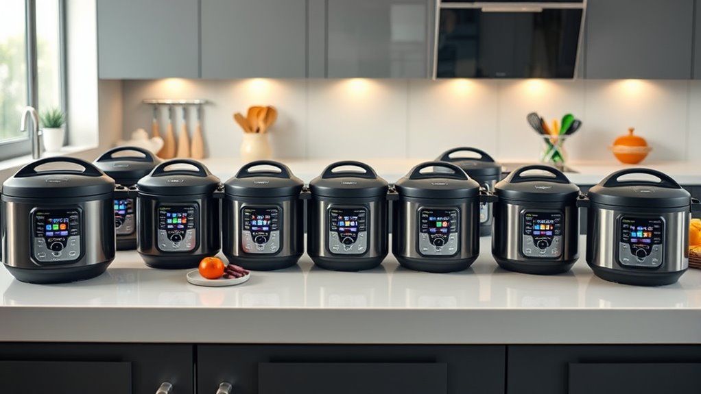Think of these smart pressure cookers as your culinary compass, guiding you through the vast sea of recipes with Wi-Fi as your trusty lighthouse. They turn cooking into an effortless voyage, letting you sail smoothly from novice to chef. So, whether you’re steering through busy weeknights or exploring new flavors, these gadgets are your reliable crew. Embrace the future of cooking—your delicious journey awaits just a tap away.