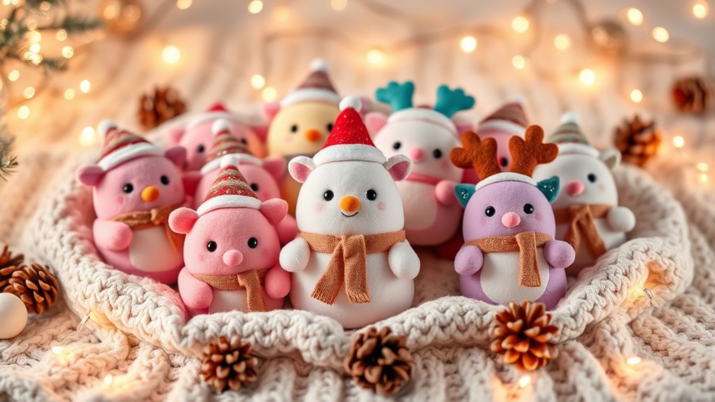 If you’re looking for the 10 best Squishmallows for a cozy holiday season in 2025, I’ve got you covered. From limited edition characters like Brooke the Polar Bear and Ignacio the Snowman to festive favorites like Cam the Christmas Cat and Richie the Axolotl, these plushies pack charm and exclusivity. There’s even countdown calendars with mini plushes and themed designs like gingerbread cookies. Keep exploring to discover how these adorable collectibles can brighten your festive moments.