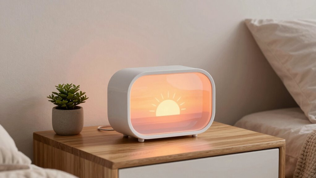 Sunrise alarm clocks improve sleep quality by gradually increasing light, signaling my body to wake up naturally. This gentle illumination helps regulate my circadian rhythm, making me feel more refreshed and less groggy. I find that waking up with light reduces my reliance on loud alarms, which can disrupt sleep cycles. Overall, they create a smoother progression from sleep to wakefulness, leading to better rest and more energized mornings.