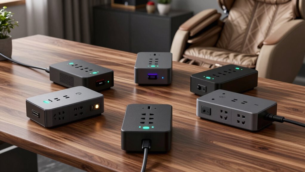 Choosing the right surge protector for your massage chair is vital to keep it safe and running smoothly. With so many options out there, it’s easy to get overwhelmed. Just remember, the devil is in the details—consider outlets, USB ports, and joule ratings. Don’t put all your eggs in one basket; pick a protector that offers reliable coverage. After all, a stitch in time saves nine, so invest wisely now to avoid headaches later.