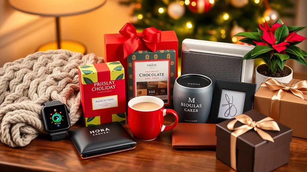 Personalization options can considerably elevate your Christmas gift by adding a special, meaningful touch that shows you’ve put extra thought into the present. Personalized gifts like engraved jewelry or custom photo items instantly feel more unique and heartfelt. Monogrammed accessories or custom-made clothing let recipients enjoy one-of-a-kind pieces tailored to their tastes. You can also enhance sentimental value with personalized tech gadgets or home decor, featuring names, initials, or special messages. Many options allow you to choose colors, patterns, or finishes, ensuring the gift perfectly matches their style. Adding a memorable date or heartfelt message transforms an ordinary item into a keepsake they’ll cherish for years. Personalization makes your gift stand out, making the holiday extra special for everyone on your list.