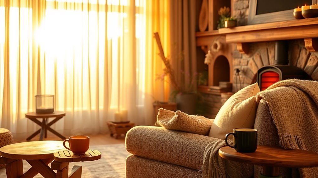 After a long week, you can truly unwind by embracing relaxation rituals like mindful meditation and cozy activities. Spend a few minutes focusing on deep breathing or muscle relaxation to clear your mind and reduce stress. Curl up with your favorite book or listen to calming music to slow down and reconnect. These simple routines help you shift into a peaceful weekend mindset. Keep going to discover more effective ways to make your weekend truly restorative.